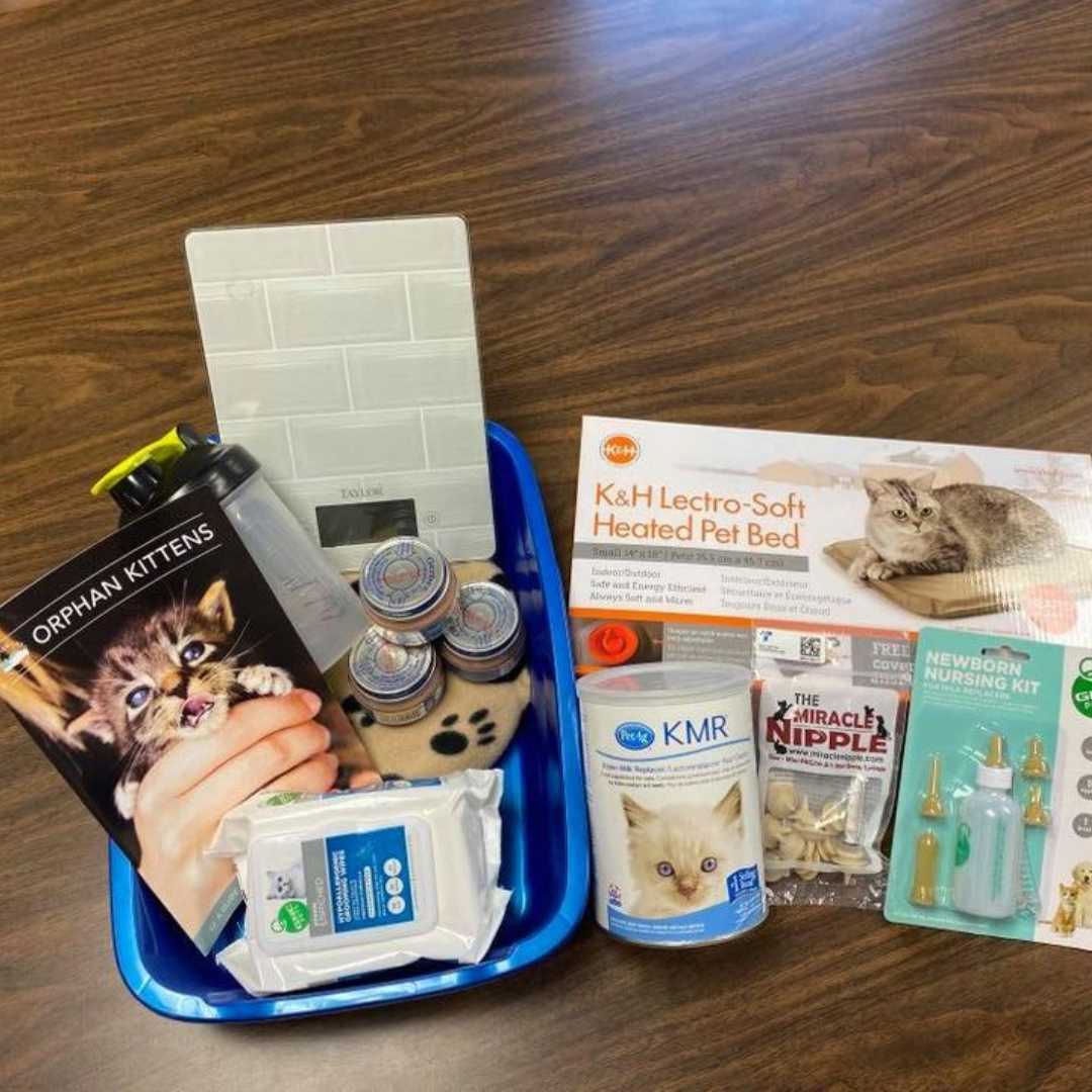 Send a teenie tiny kitten to a foster home with all the supplies needed to care for and house such a special little baby! Heating discs, bottles, formula, Miracle nipples, scale, and so much more are all needed for a healthy start!